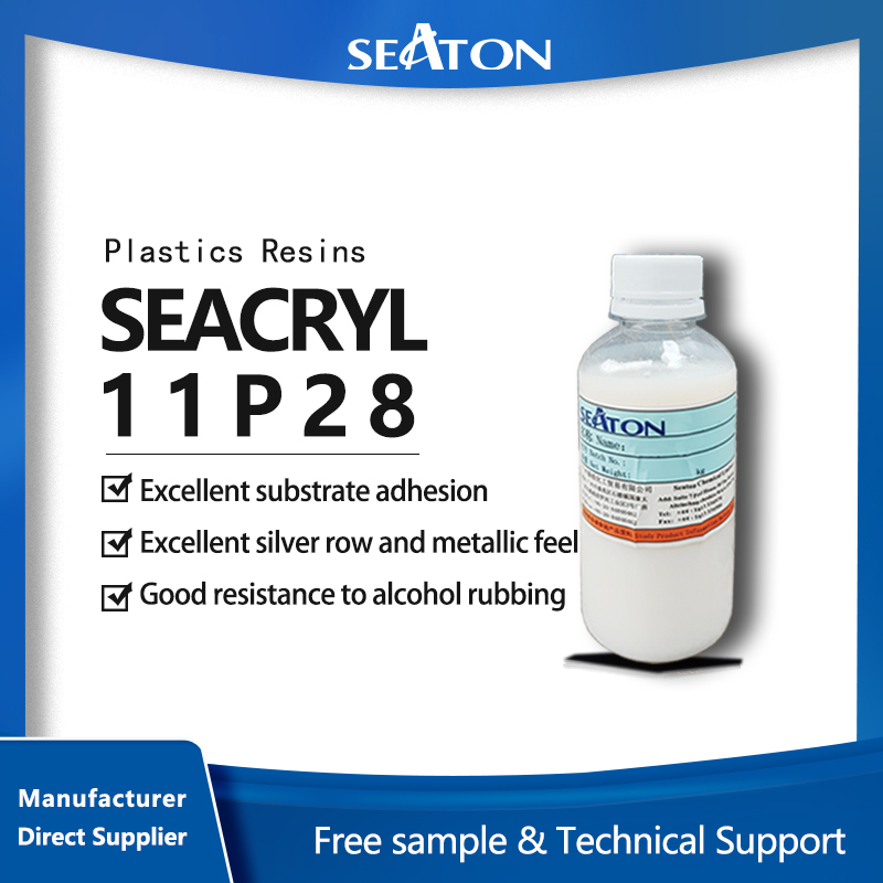 SEACRYL11P28 is an acrylic emulsion for waterborne plastic coatings, designed for waterborne one-component solid topcoats, one-component silver powder paints. The emulsion has a good silver drain effect, and has the characteristics of fast hardness establishment, high film hardness, and excellent alcohol rubbing resistance. This product has no artificial addition of ethoxyalkylphenol (APEO), no formaldehyde and formaldehyde emissions.