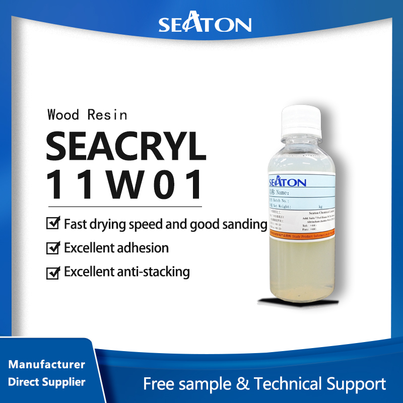 Seacryl 11W01 is the item of Hydroxy acrylic emulsion for aqueous wood coatingwhich designed to be used in dual-component pigmented paint or clear paint. It performs excellent transparency and chemical resistance when use with hydrophilicity modification polyisocyanate curing agents. At the same time, it has the feature of harden fast,high hardness for varnish film and so on.